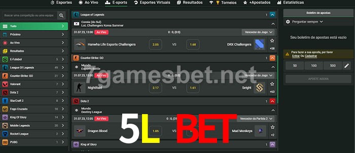 O 5L Bet oferece uma grande seleção de opções de apostas em e-sports com probabilidades competitivas